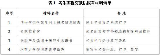申请“硕博连读”考生请按表1提交纸质材料。