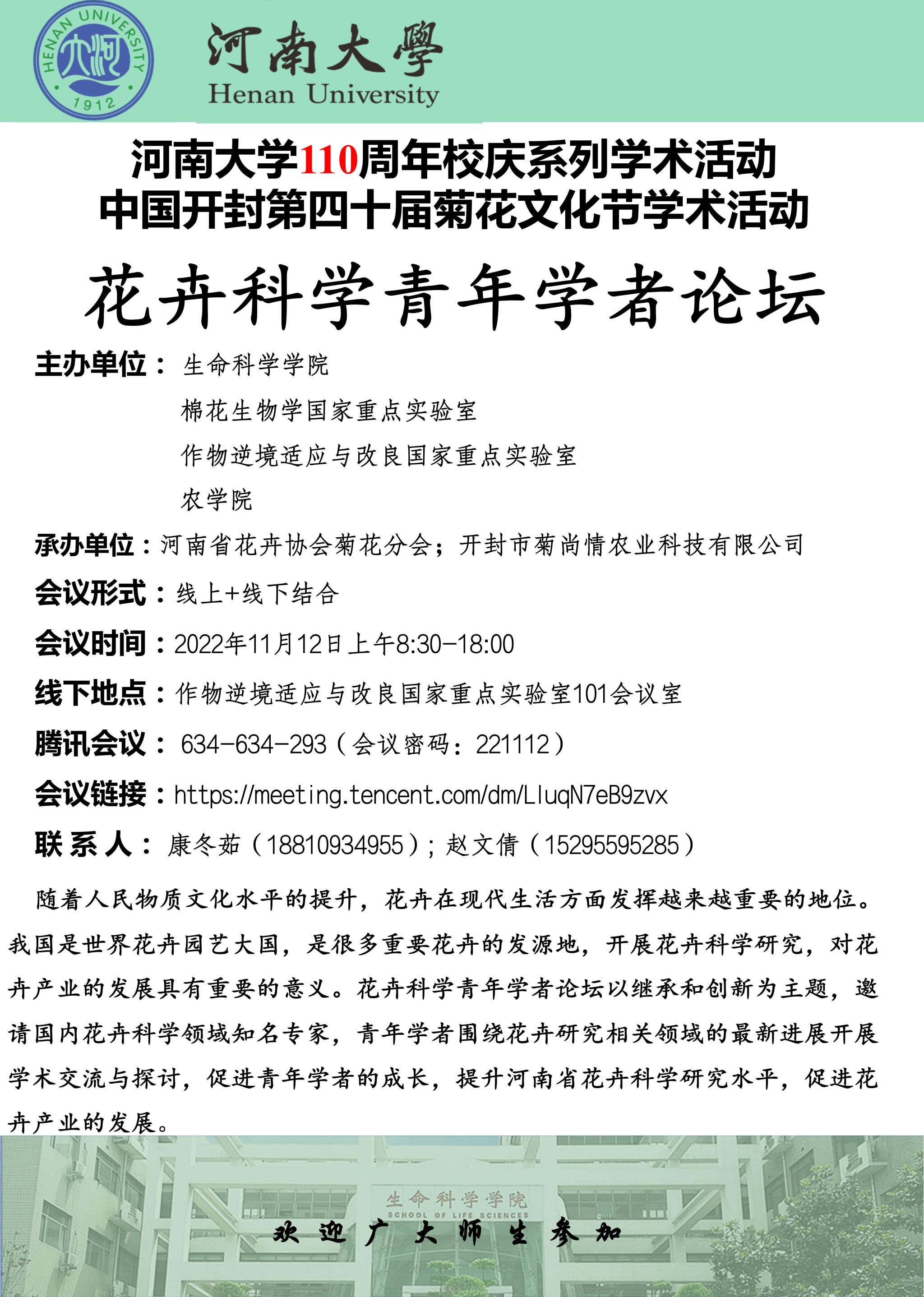 永利集团304am登录110周年校庆系列学术活动;中国开封第四十届菊花文化节学术活动;花卉科学青年学者论坛