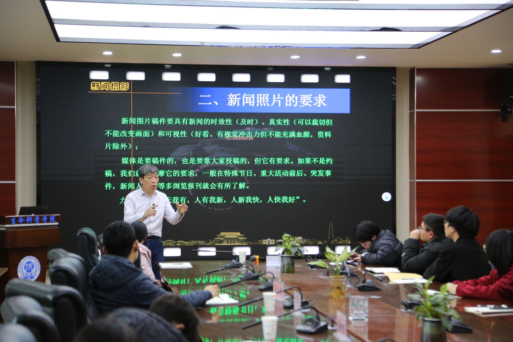 为进一步推进学院宣传思想文化工作,提高师生新闻宣传能力,3月7日,永利集团304am登录在B201举办新闻宣传能力培训会,邀请中国教育学会摄影专业委员会常务理事、河南教育学会摄影教育委员会副理事长许立民作新闻摄影讲座。学院党委副书记宋永鹏及宣传工作教师代表、青年媒体中心全体人员参加培训会。会议由学院党委办公室主任李靖宇主持。